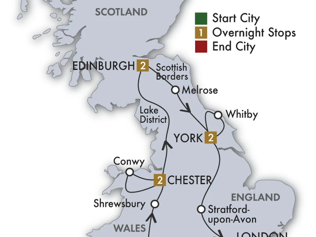Drive through the countryside of north Wales as you journey to Conwy, a medieval town dominated by a stunning medieval fortress, Conwy Castle. Tour this UNESCO World Heritage Site, built by Edward I in the 13th century, viewing its well-preserved walls, towers, and breathtaking views of the surrounding countryside. In the ancient city of Chester, explore the Roman and medieval heritage on a walking tour. Your evening is free to explore this fascinating place as you wish. (B)