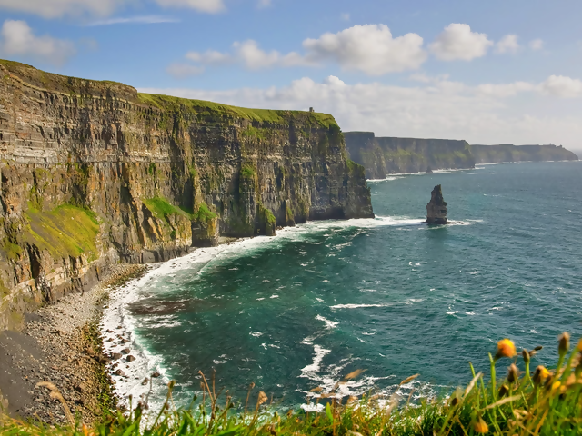 Cross the Shannon River estuary by ferry on your way to visit the Cliffs of Moher. Take in the spectacular views from these awesome cliffs, soaring 700 feet above the Atlantic. Head on to your hotel, and then in the evening, you’ll visit a genuine castle for a medieval-style feast, complete with serenading lords and ladies. (B, D)