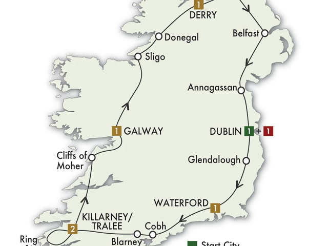 - Ardilaun Hotel, Galway (Mon & Wed departures) or Galway Bay Hotel, Galway (Fri departures) (1)