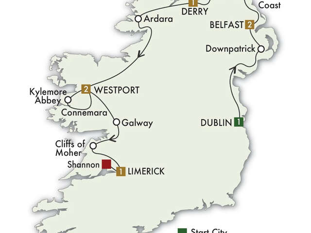 Drive north along the Nine Glens of Antrim for views of mountains, valleys, and coastline. This scenic region is one of the locations for “Game of Thrones.” Stop for photos at the ruins of Dunluce Castle. Explore the Giant’s Causeway, enormous hexagonal columns formed by volcanic activity 60 million years ago. In Derry, join a local guide for a short walking tour around the defensive walls that encircle the compact old city. Then visit the Walled City Brewery, an award-winning CIE Tours Exclusive venue, for dinner and a flight of their craft beers. (B, D)