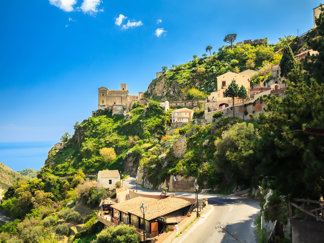 Delve into the charm of Taormina, a captivating blend of natural beauty, rich history, and vibrant Italian charm. Its winding streets are filled with boutique shops, authentic cafes, and lively piazzas. Take a walking tour to see lush public gardens, medieval palazzos, Baroque fountains and ancient ruins. Enjoy free time for lunch. In the afternoon, visit the remote hilltop village of Savoca showcased in ’The Godfather’. Return to Taormina for an evening free to dine and explore as you wish. (B)