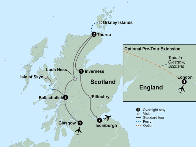 Today, enjoy stunning and unspoiled landscapes as you journey further into the Highlands. Travel through the Great Glen, famous for its many lochs (lakes). Visit the striking ruins of Urquhart Castle before enjoying a cruise on Loch Ness, one of Britain’s most famous bodies of water. Keep your eyes open — you never know when Nessie might appear! Travel off the beaten path to Thurso, one of Scotland’s most remote towns on the North Coast. Embrace the rustic environment of the Scottish Highlands as you settle in for your two-night stay.