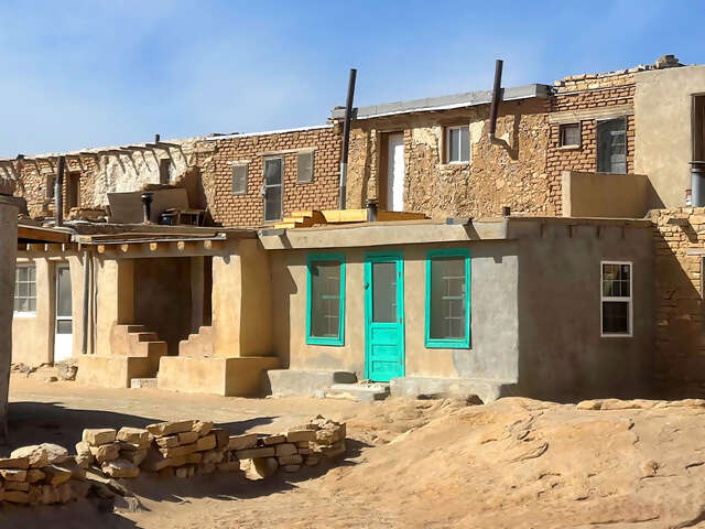 This morning, depart Santa Fe and make your way to the Sky City Cultural Center and the Acoma Pueblo — the oldest continuously inhabited settlement in North America. Perched atop a mesa, the village known as "Sky City" remains home to a vibrant community of Acoma people. Take a shuttle to the pueblo, where an Acoma community member will guide your tour. Wind through narrow streets lined with homes and ancient structures that tell the story of the Acoma Pueblo. Visit the Spanish mission church, the oldest surviving European church in New Mexico. At the Cultural Center, you’ll have the chance to browse intricate Acoma pottery sold by artisans. After your visit, continue to Chinle for an evening on your own.