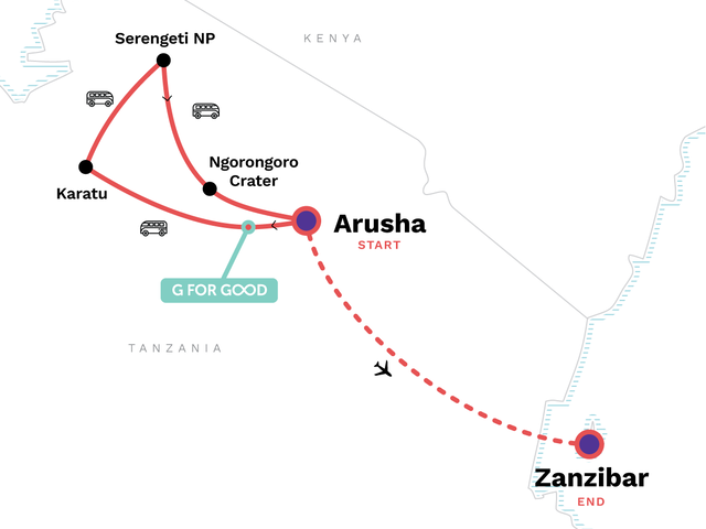 Your Discover Moment: Nungwi. Complimentary Arrival and Departure Transfers. Welcome and Farewell dinners. Picnic lunch at Hippo lake. Crater Rim View Point Visit. Safari drive inside Ngorongoro Crater. Serengeti National Park safari drives. Wildlife Safari Drives near Ngorongoro Highlands. Banana Plantation Bike Ride or Village Walk on return to Arusha. Internal flight between Arusha & Zanzibar. Stone Town walking tour. Nakupenda Beach Trip with dhow and BBQ lunch. Free day in Zanzibar. All tips included for activities and meals, except for CEO and porterage. All transport between destinations and to/from included activities
